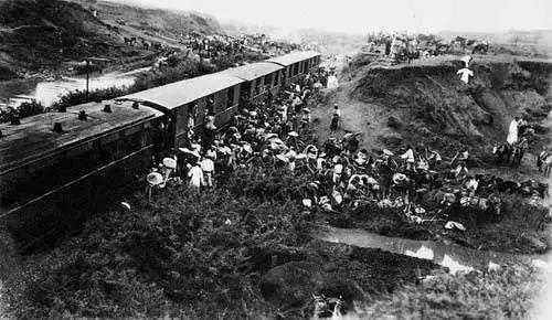 從1903年至1910年之間,在筑路過程中,法國殖民者對中國筑路工人進行了極其野蠻的奴役、壓迫。僅在滇段修筑過程中,除役使云南各族人民外,還從河北、山東、廣東、廣西、福建、四川、浙江等省招募大量民工,前后7年間,總數不下二三十萬,而被虐待折磨致死者近8萬人。
