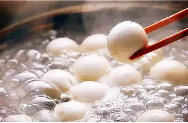 在冬至,湯圓必須擁有姓名。圓,意味著團(tuán)員和圓滿,冬至吃湯團(tuán)又叫“冬至團(tuán)”。就傳統(tǒng)習(xí)俗來說,“冬至團(tuán)”可以用來祭祖,也可用于互贈(zèng)親朋。