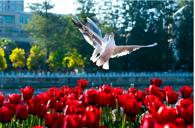 隨著公園西區(qū)長聯(lián)文化大道上銀杏漸黃,臨水區(qū)域就會(huì)飛來了首批安家的紅嘴鷗。