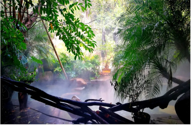云南華僑城溫泉水公園擁有2萬平方米的歐式水療館、65個(gè)特色泡池的室外坡地園林景觀泡池區(qū),在泡溫泉的同時(shí),可以享受無邊界泳池,在星座沐浴區(qū)感受無限空間的遐想,體驗(yàn)“漂流”樂趣。