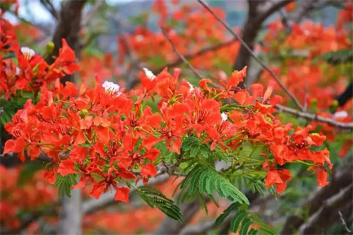 綠汁,這座曾經的銅都,雖沒有了曾經的繁華,卻在這個快節奏的時代里,保留著一份曾經的美好,總讓人忍不住想去靜靜感受。每年五月,鳳凰花燃起的火焰都會燒紅綠汁的半壁天空,一簇簇一團團,如火般綻放,持續一整個夏天。走在小鎮街頭,陣陣清脆的蟬鳴穿透樹梢,歡快的音符在林間跳躍,似乎為夏日的鳳凰花彈奏生命的贊歌。