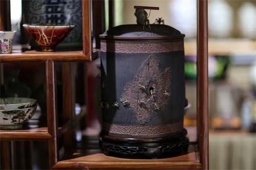《“蟻”往無前》:看,那破損的茶葉罐身上,有一串栩栩如生的銅鋦小螞蟻正在奮力向上,洞口處,另一只小螞蟻正試圖鉆進洞中一探究竟,罐蓋上,一只小螞蟻威武地舉著一根樹枝挺身站立。吾志所向,一往無前,螻蟻尚且如此,何況人乎。作品在中國工藝美術(shù)大師作品暨手工藝精品博覽會上獲“百花杯”中國工藝美術(shù)精品獎優(yōu)秀獎,在云南省工藝美術(shù)第十二屆“工美杯”榮獲金獎。