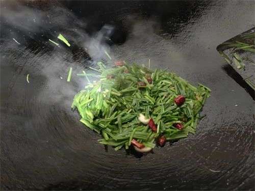 這個季節的“仙人韭菜”,正是青蔥鮮嫩的時候,只看一眼,就仿佛吃到了滿口清香。正是這種清香的味道,與其他食材搭配在一起,淡者出味,濃者提鮮。當地村民烹制“仙人韭菜”最經典的做法就是將其作為佐料,搭配自家養的土雞蛋,或素炒一盤,鮮得眉毛都掉下來,真可謂農家野菜第一鮮。因其只在巖子營有,“仙人韭菜”也成了巖子營的代名詞之一。