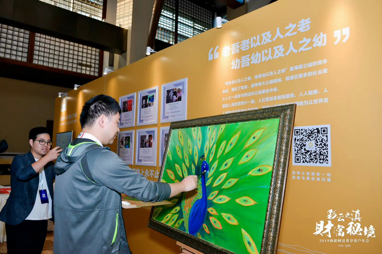 2019年11月14日,“彩云之滇 財富秘境”2019年海銀財富尊享客戶年會重磅開啟,來自全國各地的海銀尊享客戶們悉數到場。在美麗的滇池之畔,領略一場財智盛宴之余,更有篝火晚會、云南普洱茶藝、健康管理沙龍、手工精油DIY、云南扎染DIY、海聞教育行為金融學互動體驗、“宇觀新時代”贈書會等“秘境”同步精彩放送。