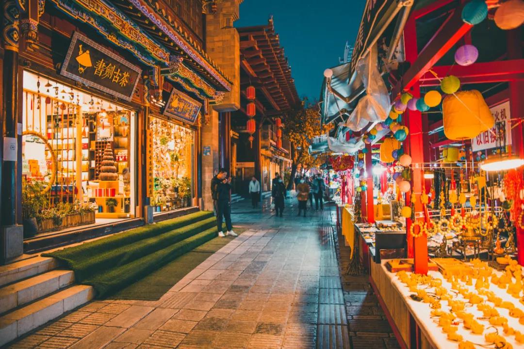景星街游客眾多,如果要打卡拍照,建議夜間探訪,適合穿著漢服,畫一個古色古香的妝容,在古樸的建筑前,留下古韻瞬間。