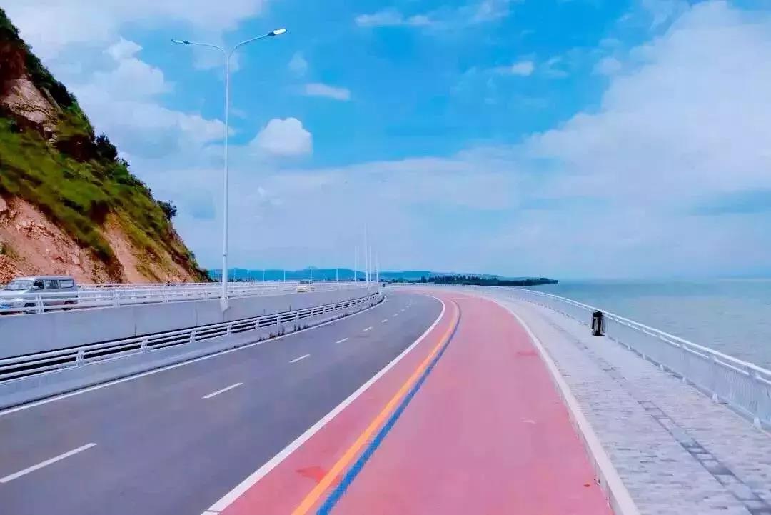 環(huán)滇池騎行路長、較平緩、坡度小,高海路一段景色秀美,但一定要注意防曬。過了??诠?,卡車和行人、村鎮(zhèn)增多,注意避讓,注意防塵。