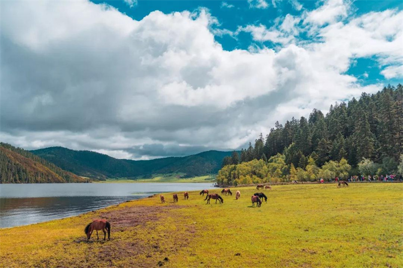普達(dá)措國家公園內(nèi)有明鏡般的高山湖泊、水美草豐的牧場、百花盛開的濕地、茂密的原始森林......