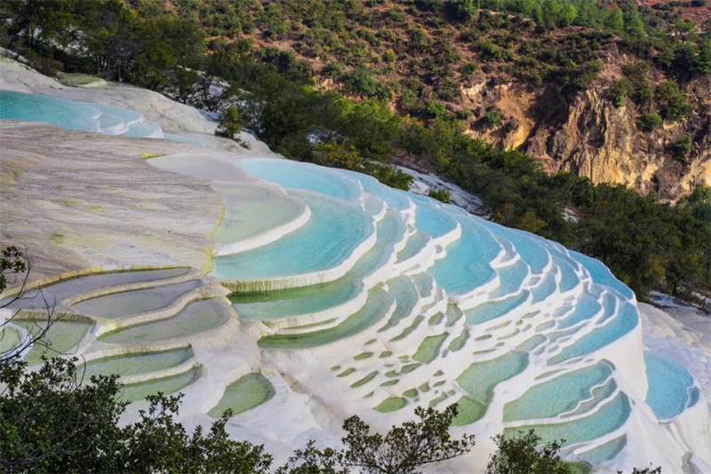 郁郁蔥蔥的青山之中,露出圣潔的華臺,一汪汪池水層層疊疊,向下蔓延,無疑是深山間的一處驚喜。