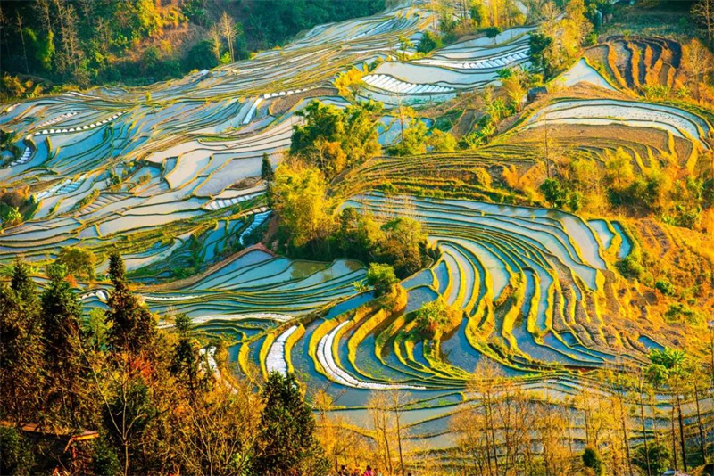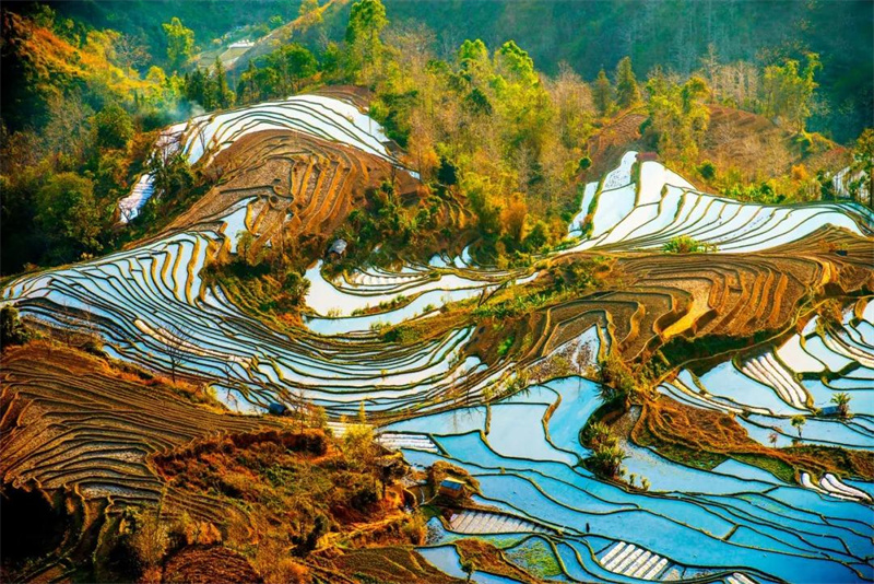 以前,總以為梯田就是一道道令人驚艷的曲線,卻不知,灌水期的梯田如此美輪美奐。