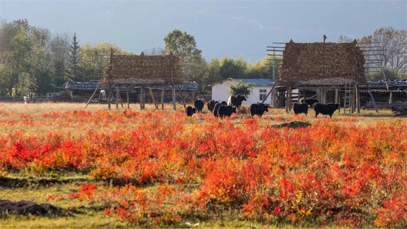 9、10月時,這里是狼毒花的天下,大朵大朵火紅眼里的狼毒花,異常絢麗。