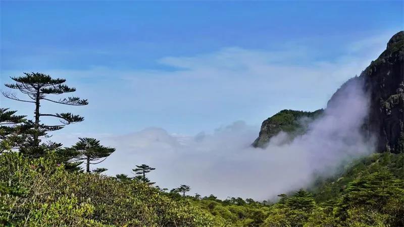 北回歸線上的綠色明珠,生長著中國面積最大的苔蘚常綠闊葉林,保存有最完整的熱帶森林生態(tài)系統(tǒng)垂直帶譜。大圍山常有云霧,山谷時隱時現(xiàn),宛如仙境一般。登上大圍山主峰,遙看云海,近觀諸峰,山水澹澹生煙,云海浮波翻涌,如臨幻境。