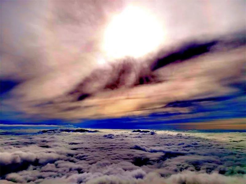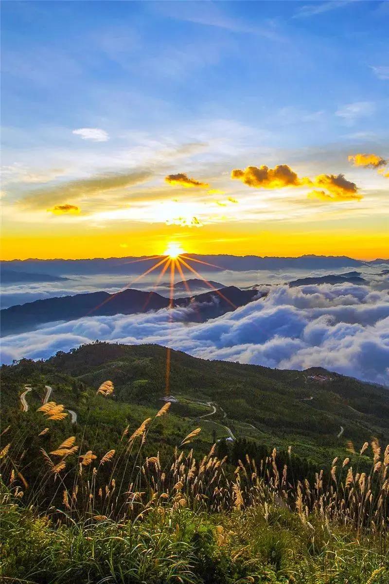 置身大蘆山的茫茫云海,如漫步云端,晨觀朝陽初升,暮賞落日紅霞,似有一只巧手執(zhí)彩筆為遠處山嵐勾勒出一幅絕美圖景。云海漫涌,群山萬壑隱于云層之下,只有遠處的山巔隱約可見,如同天際的孤島,在白浪里沉浮翻騰。