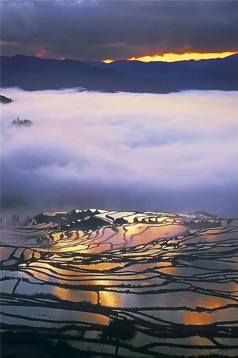 世界上集中連片最大的梯田,好似藏在哀牢山中的一塊璞玉,令人心馳神往。在這里,梯田與村莊、森林、水系相映成趣,構成了一幅幅美麗的畫卷。梯田云海厚實變幻莫測,晨光燦爛柔美,氣勢壯觀,姿態(tài)美妙。