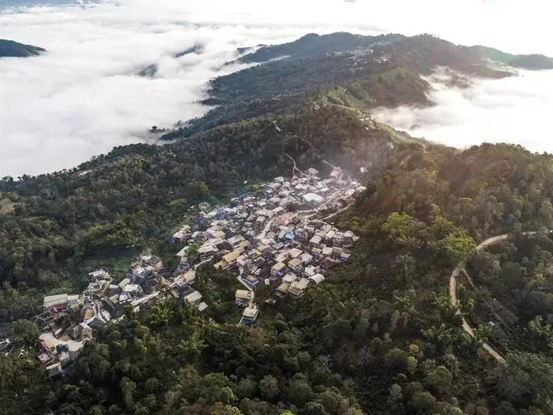 基諾山峰巒疊嶂,谷地幽深,景色優(yōu)美。入冬的早晨,當?shù)谝豢|陽光灑在山梁上時,山谷中的韻味便一股腦噴涌出來,形成千姿百態(tài)的云海,山林、綠野、人家都被云海漸漸浸潤、點彩,身處其間,如臨幻境。