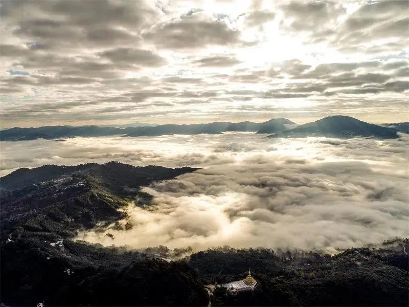 登頂雞足山,俯首腳下云海,云海浮波,隨手一捧就是滿懷的云漪。日出時分,云海晨暉,五彩斑斕,峰巒隱現(xiàn)如畫卷。除了云霧,還有清秀雅麗的山水風光、古樸厚重的歷史建筑,禪意生活,不負如來,亦不負卿。