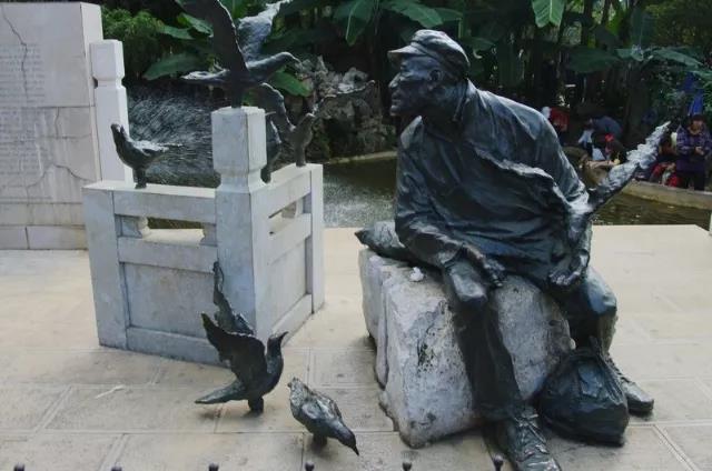在翠湖公園還有“海鷗老人”吳慶祥的雕像,