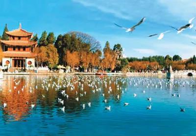 成群的海鷗就會從滇池飛來翠湖,