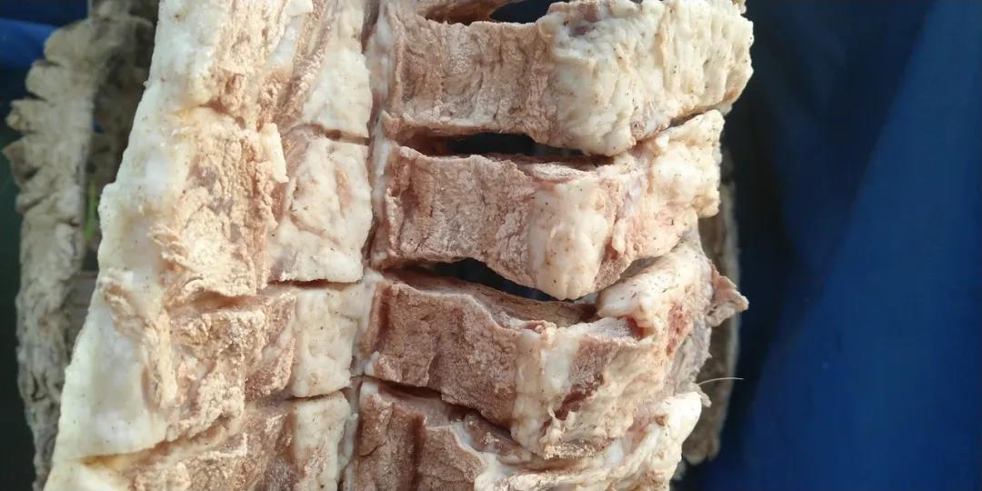 麗江獨特的氣候和天然綠色的環境,賦予了制作優質臘排骨的條件,自然風干的麗江臘排骨干爽緊實、黃里透紅,色澤發亮,表面無霉斑,聞起來還有股淡淡的肉香。