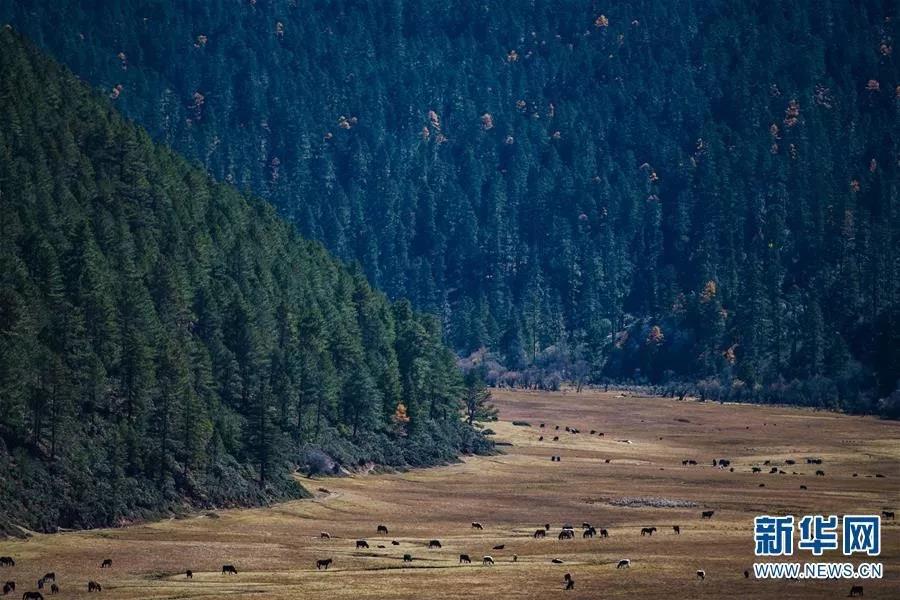 普達措國家公園內景觀多樣,擁有高原湖泊、牧羊和濕地、河谷溪流,以及飛禽走獸時常出沒的原始森林,湖清清,天湛藍,仿若一個無任何雜質的童話世界。