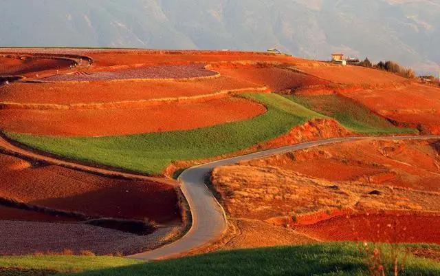 每年9至12月,一部分紅土地翻根待種,另一部分紅土地已經(jīng)種上綠綠的青稞或小麥等農(nóng)作物,遠(yuǎn)遠(yuǎn)看去,一塊是紅一塊是綠,紅綠相間碰撞出最艷麗的景致。