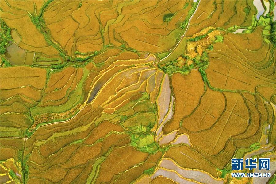 一層層金黃的水稻在秋日陽光的照耀下,點(diǎn)綴了元陽不一樣的梯田美景。游走在金色的田野間,一幅幅金黃色的畫卷在眼前展開,畫面的風(fēng)物景色隨時(shí)變化著,只有那秋熟的稻谷之黃,一成不變。